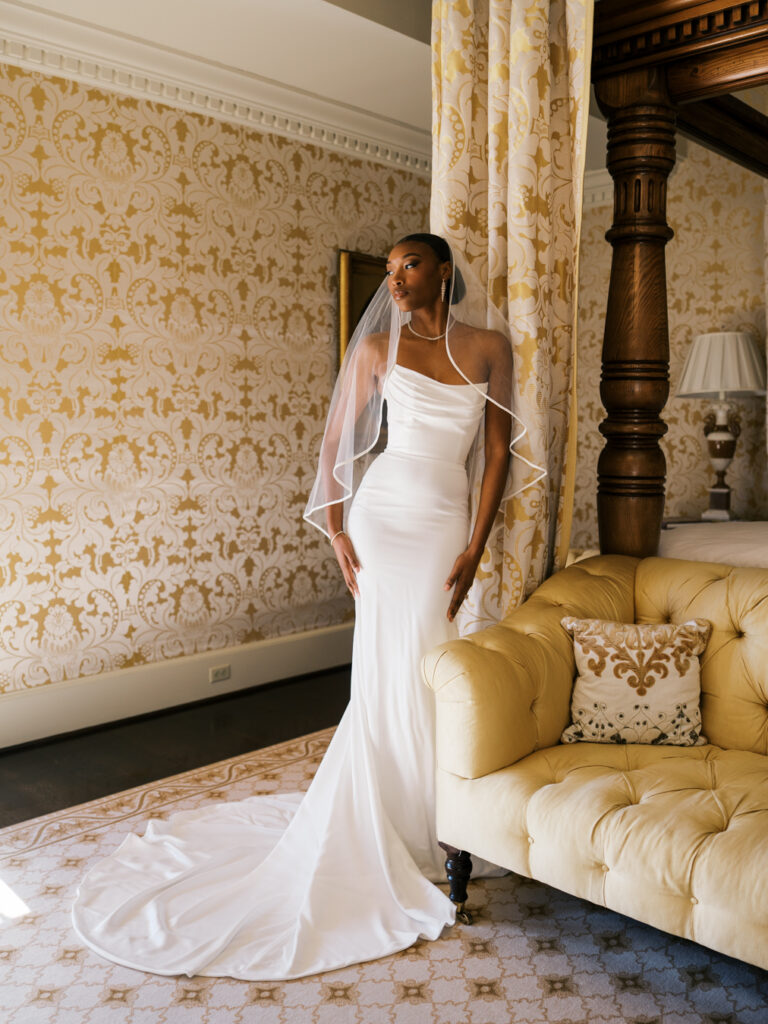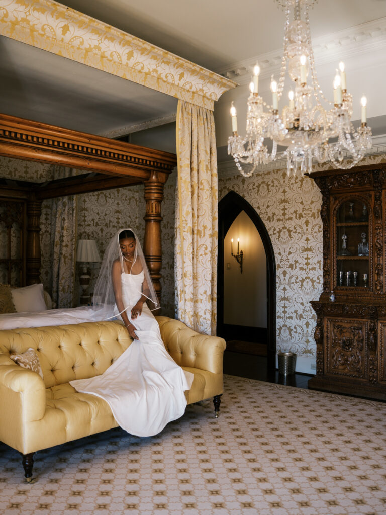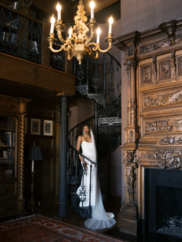 From the moment we stepped inside, it was clear that Dover Hall is unlike anywhere else. The richly carved woodwork, ornate wallpapered suites, sweeping crystal chandeliers, and that iconic wrought iron spiral staircase, every corner of this estate feels like it was designed to be photographed. We leaned fully into the editorial romance the space so naturally lends itself to, letting the architecture do as much of the storytelling as our beautiful models.